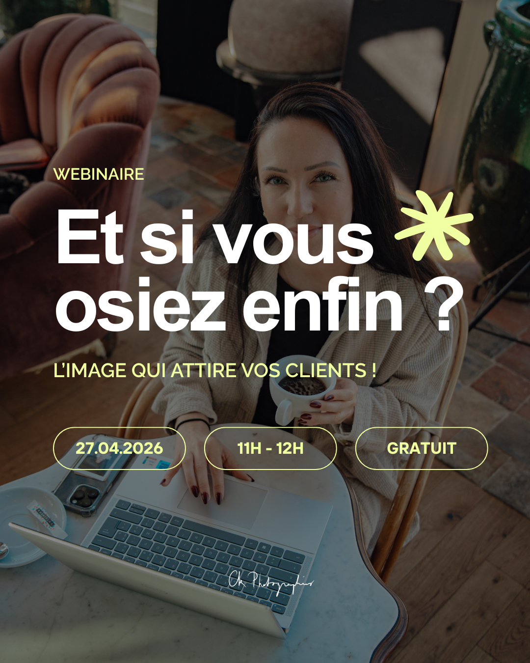 Le lundi 27 avril 2026 de 11h à 12h, participez au webinaire gratuit : "Et si vous osiez enfin ? L'image qui attire vos clients !"